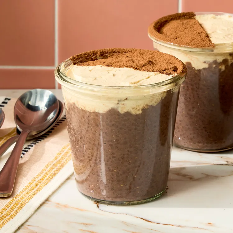 Active Time: 15 mins Chill Time: 12 hrs Total Time: 12 hrs 15 mins Servings: 4 Ingredients: Original recipe (1X) yields 4 servings 3 cups unsweetened soy milk ¾ cup chia seeds ¼ cup Dutch-process cocoa powder, plus more for dusting ⅛ teaspoon salt 2 tablespoons pure maple syrup plus 1 teaspoon, divided 1½ teaspoons vanilla extract, divided ¾ cup nonfat plain strained (Greek-style) yogurt ⅓ cup smooth natural peanut butter Buy all 7 ingredients from this recipe for $35.98 … Read more