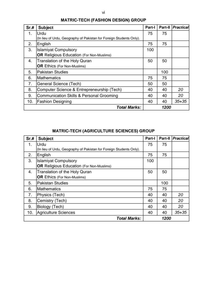 The Matric-Tech groups (Fashion Designing, Agriculture Sciences, Health Sciences, and Computer Sciences) emphasize practical skills. These streams are ideal for students seeking technical expertise for immediate employment or further studies.