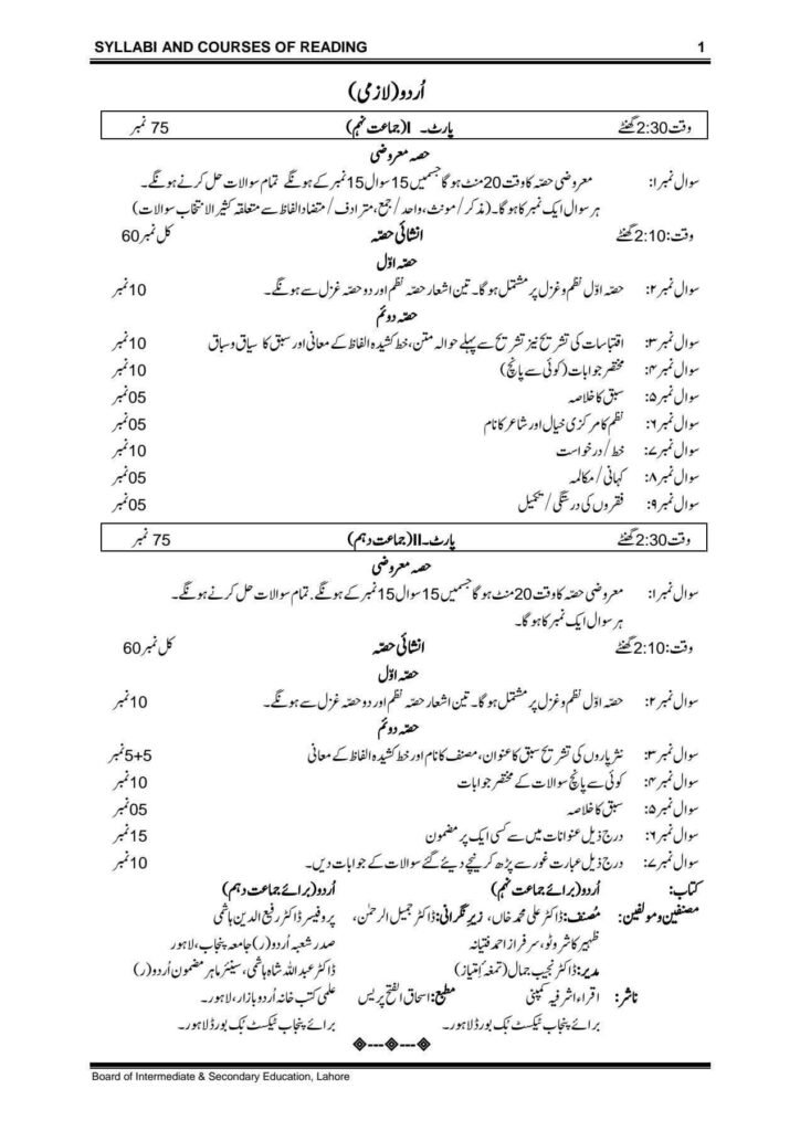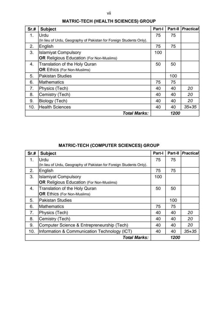 - Compulsory Subjects: Include Urdu (or Geography of Pakistan for foreign students), English, Islamiyat (or Ethics for non-Muslims), Translation of the Holy Quran, Pakistan Studies, and Mathematics.