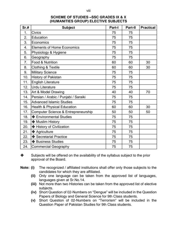 The SSC syllabus for 2025-27, as outlined by the Board of Intermediate & Secondary Education, Lahore, is structured to cater to diverse academic streams: Science, Humanities, Matric-Tech, and Dars-e-Nizami groups. Each group offers a mix of compulsory and elective subjects, ensuring flexibility for students with varied interests.
