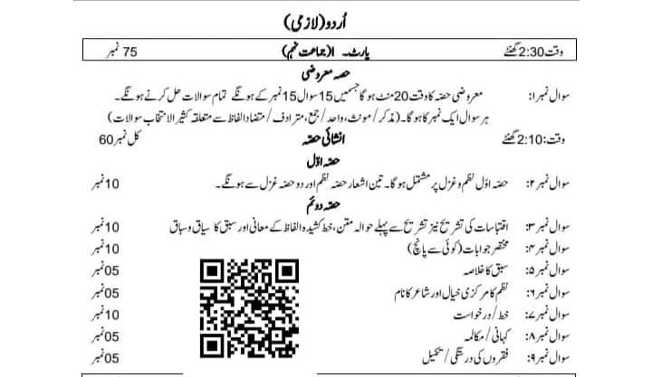 Urdu / Geography of Pakistan | 75 | 75 | – | 150 |